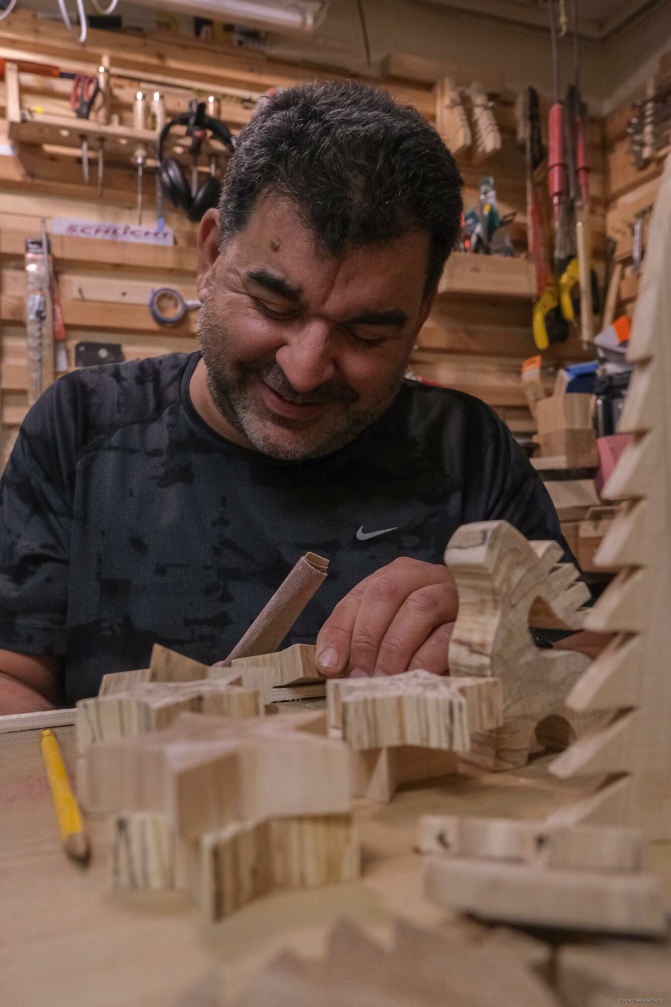 Viele Ideen kommen mir beim Werkeln in meiner Werkstatt, wenn ich die unterschiedlichen Holzarten mit Ihren individuellen Maserungen sehe und mich die Figuren aus dem Holz schon anlachen. Sie werden sofort aufgemalt und nach und nach versucht umzusetzen. So wurden es mit der Zeit immer mehr Figuren und jede doch ganz einzigartig.